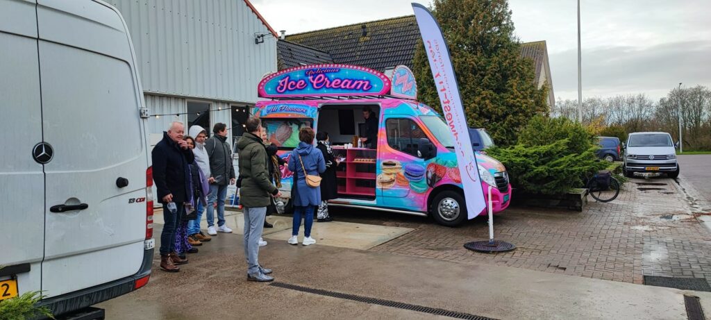 De opkomst van ondernemers in en rondom Makkum was groot. De wandeling verliep vanaf “Café De Zwaan” & “Pand 1738” via het bedrijventerrein waar een “Foodtruck” stond en waar de wandelaars/fietsers begeleid werden door Milko met zijn Disco Mobiel naar het strand “Vigilante” & “Strandbar Thuishaven”.